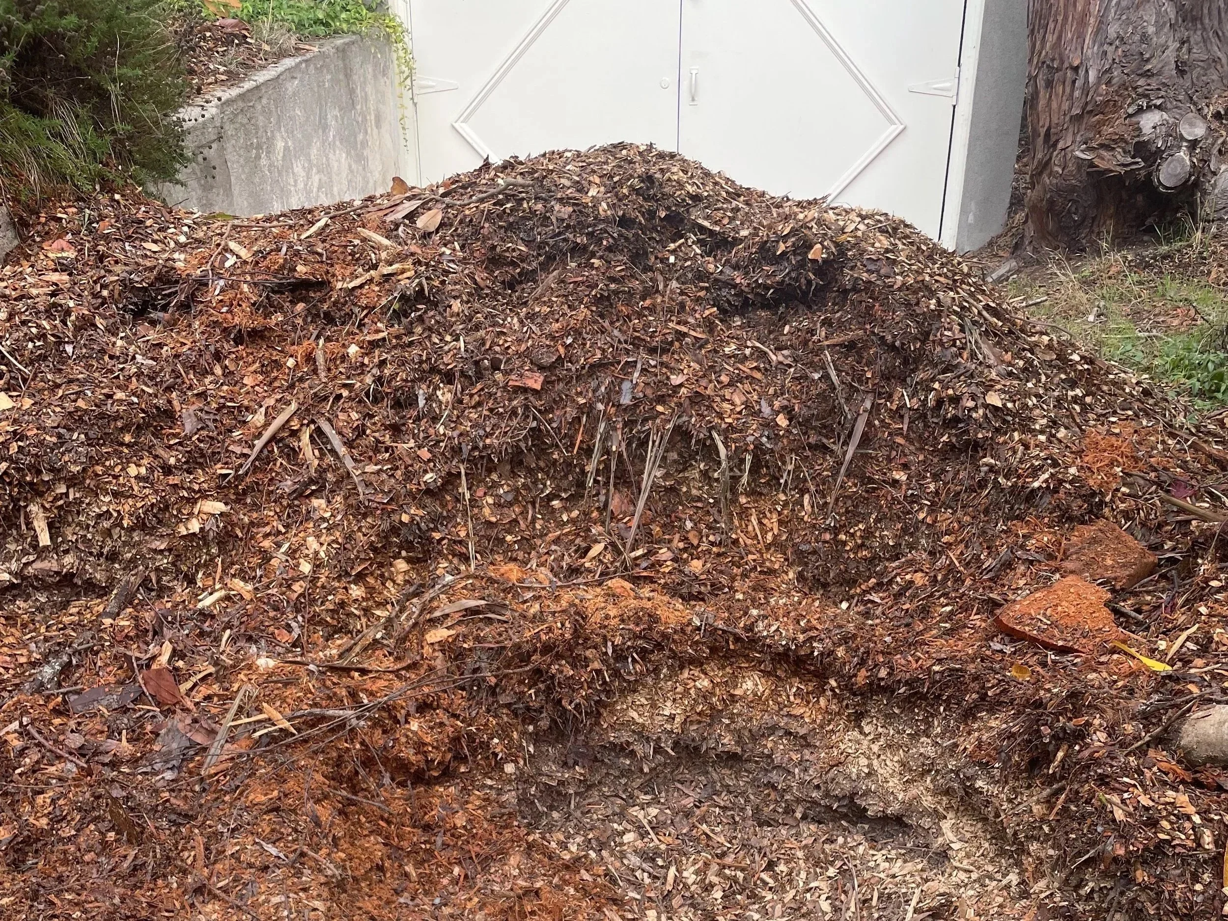 Mulching is an easy way to go green that helps the environment in several ways! Mulching is the act of putting organic or inorganic material around plants. I find inorganic mulch, such as rocks or plastic, to be problematic (heat management issues, no nutrient add, difficult to weed or change bed design) so I'm focusing on organic mulches, such as bark chips and wood mulch.You can get bagged mulch or order it in bulk. ChipDrop is a company that connects gardeners with local tree companies that need to empty their trucks. It's an option to get free wood chips if you don't mind the uncertainty of delivery timing and you have the space for them to dump an entire truck's worth of mulch on your property. It could be an opportunity to connect with gardening neighbors because there will be more than enough mulch to share!ChipDrop Pile Filling Driveway